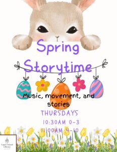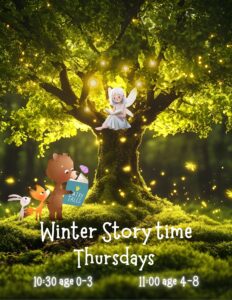 Thursdays: 10:30am for ages 0-3; 11am for ages 4-8